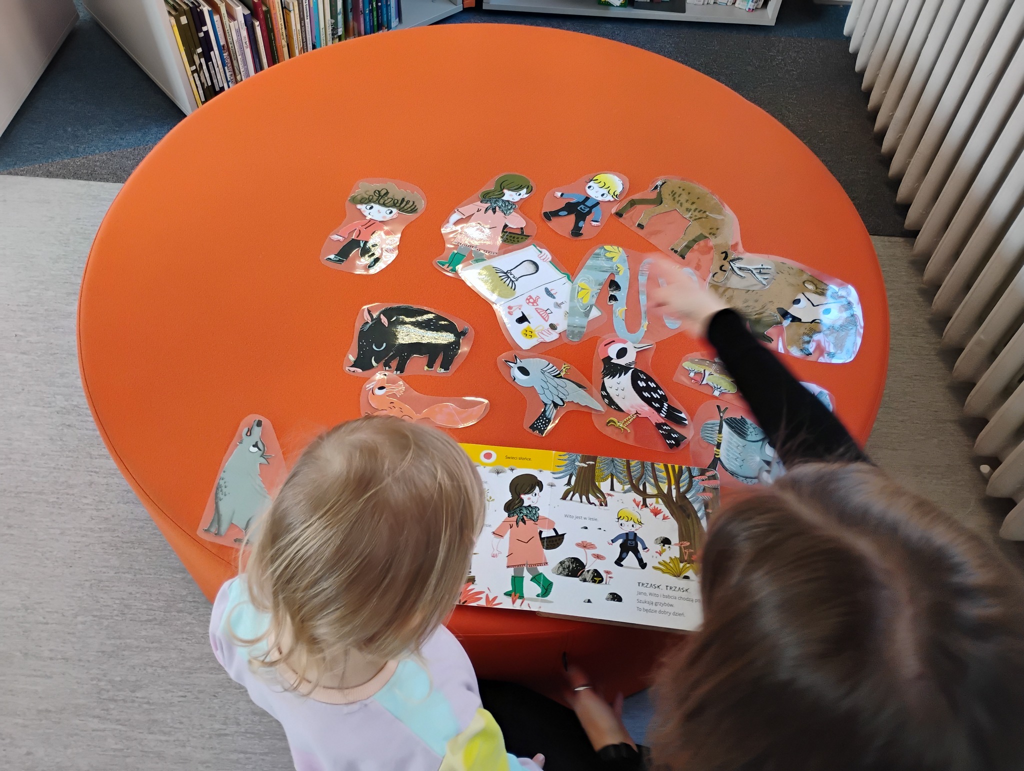 Podczas lektury książki Jano i Wito w lesie dzieci poznawały leśne zwierzęta oraz uczyły się je rozpoznawać. Następnie mogły odnaleźć je podczas gry pamięciowej przygotowanej w specjalnym kąciku czytelniczym. Na uczestników czekały także kolorowanki oraz leśne łamigłówki, które w kreatywny sposób zachęcały do odkrywania świata przyrody.